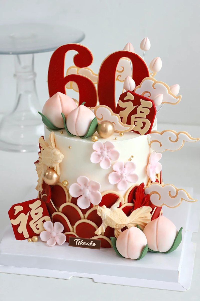 中国风祝寿主题翻糖鲜奶蛋糕
