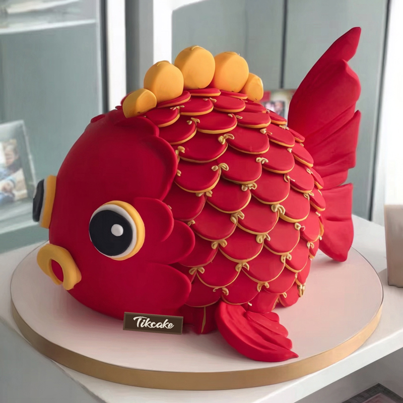 原创锦鲤主题翻糖鲜奶蛋糕