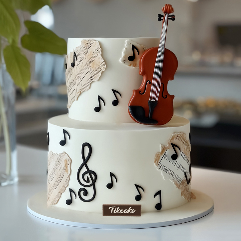 原创小提琴主题双层翻糖鲜奶蛋糕-北单竞彩app下载