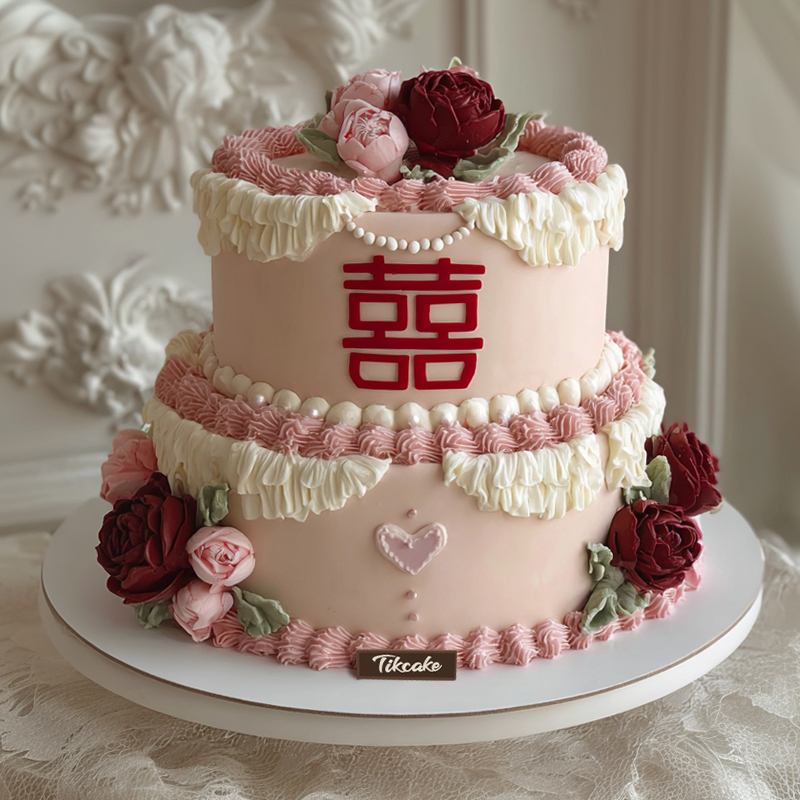 原创婚庆主题双层翻糖鲜奶蛋糕(二)