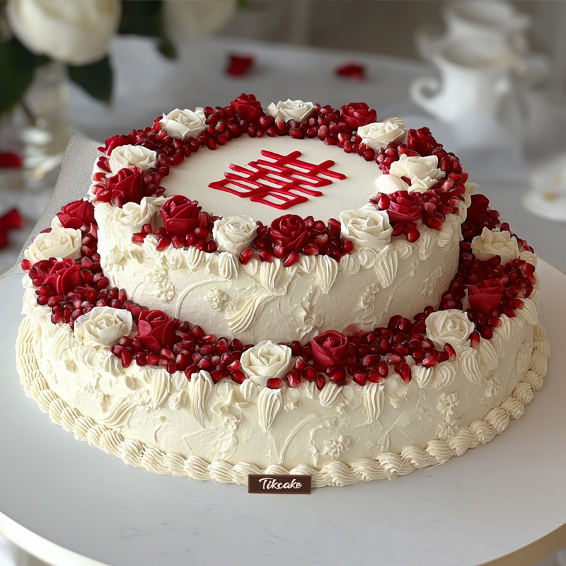 原创婚庆主题双层翻糖鲜奶蛋糕(三)