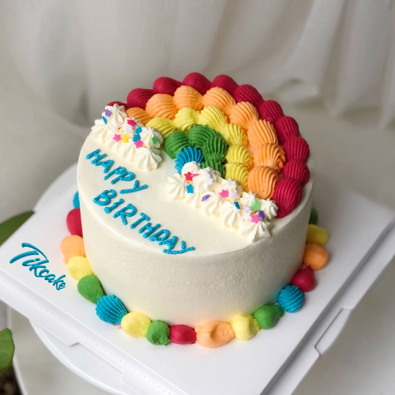 蛋糕胚 奶油(含水果果肉)叠加,表层彩虹主题奶油装饰(注:此款含有适量可食用色素,介意者慎拍)