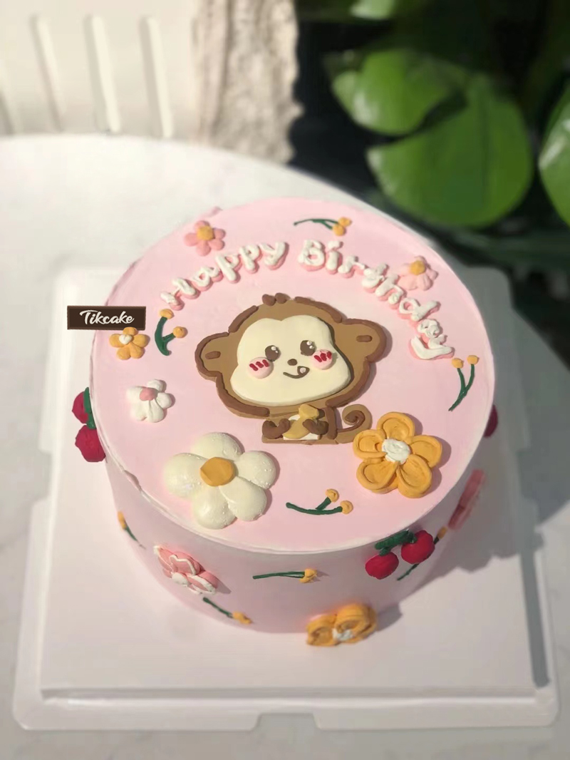 十二生肖粉色款猴主题手绘鲜奶蛋糕-北单竞彩app下载