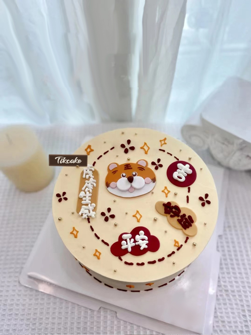 十二生肖虎祝福语主题手绘鲜奶蛋糕-北单竞彩app下载
