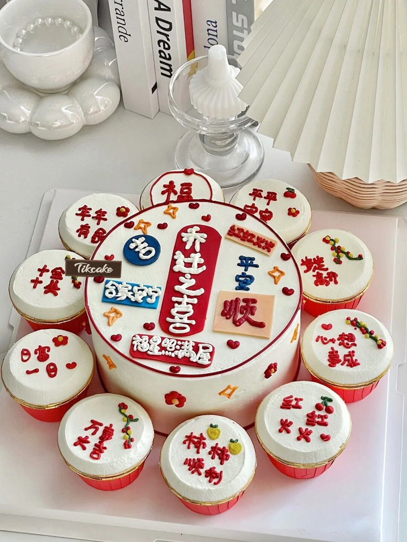 含10个纸杯蛋糕。内层蛋糕胚 奶油叠加(含水果果肉),表层手绘图案装饰(文案可定制,请下单时留言)